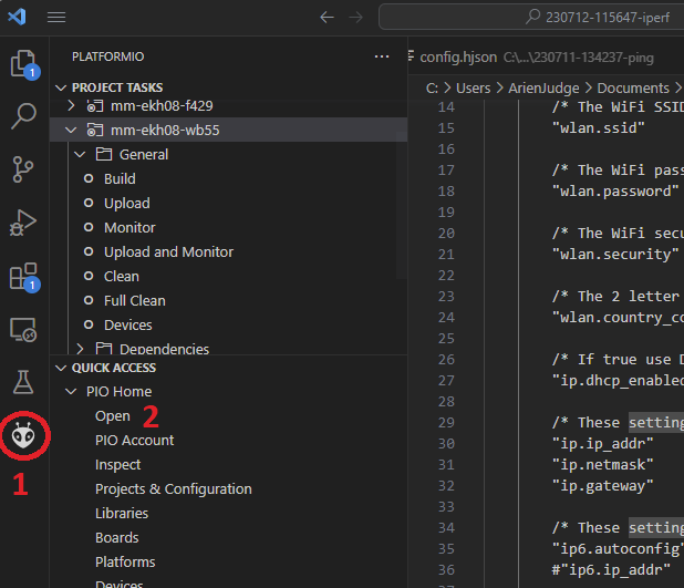 Figure 23. PlatformIO quick access